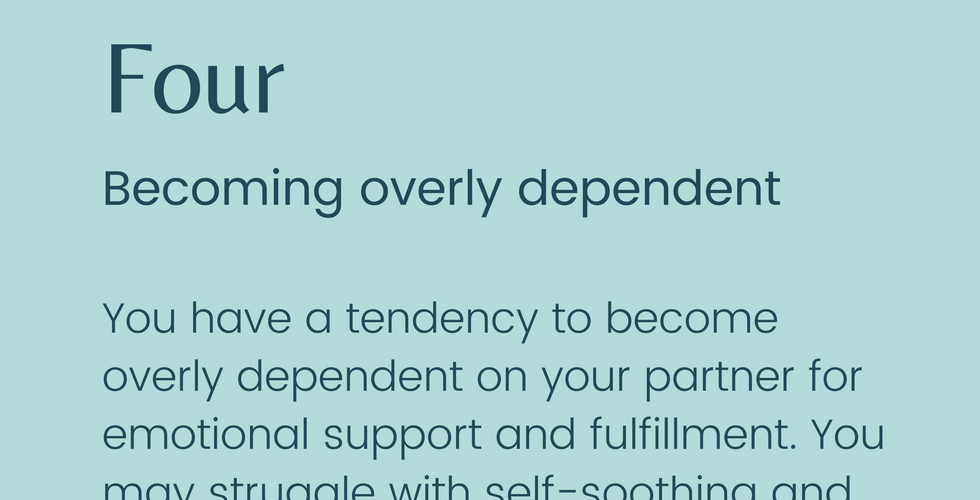 4. Becoming overly dependent: You have a tendency to become overly dependent on your partner for emotional support and fulfilment. You may struggle with self-soothing and rely heavily on your partner to regulate your emotions.